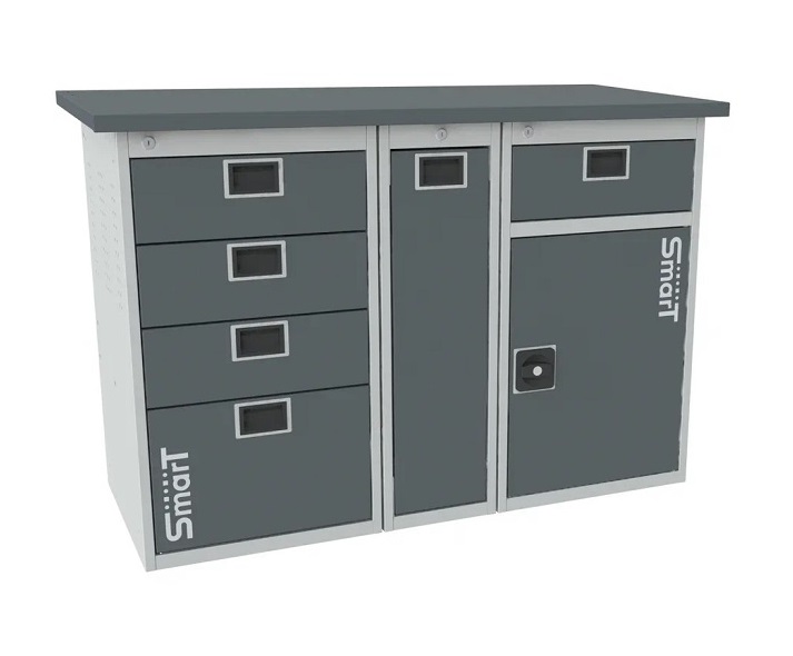 Дополнительно на верстак можно установить: перфорированный экран SMART, комплект освещения SMART, аксессуары на экран SMART, возможна установка системы мастер ключ.