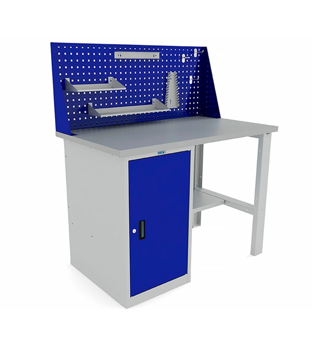 Дополнительно на верстак можно установить: перфорированный экран WS-120, полку малую SSh, полку большую LSh, полку для баллончиков ScSh, держатель инструментов Wh, держатель ключей Wh, металлические крючки НК, блок электророзеток ЕоВ, держатель для бумажных полотенец РТН, Лоток А-4, пластиковый контейнер и другие аксессуары