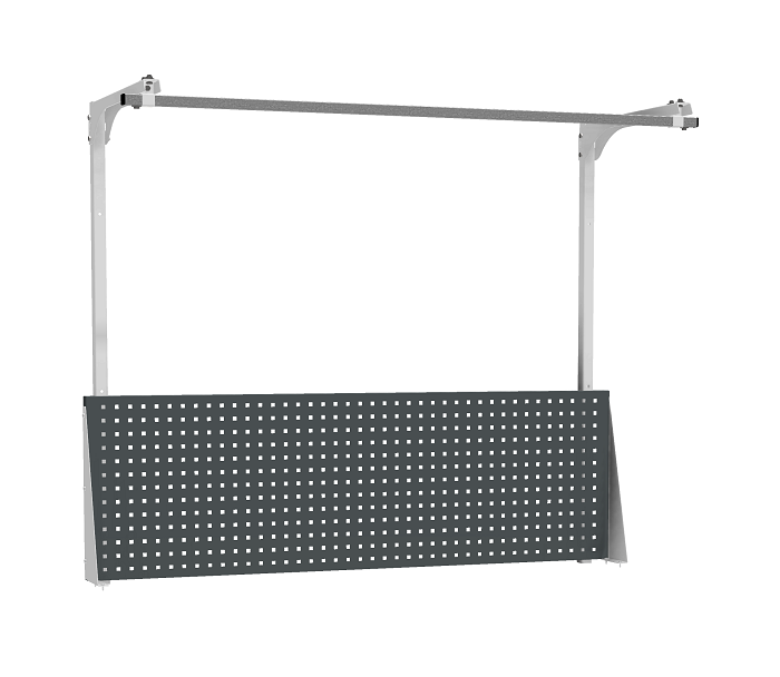В комплектацию верстака входит: столешница ВЛ-К 150, полка и стенка ВЛ-К, две тумбы ВЛ-К-010, один перфорированный экран ВЛ-К-150-Э2. Столешница выполнена из фанеры (24 мм) с покрытием из оцинкованного листа металла. Тумба ВЛ-К-010 комплектуется двумя полками и дверью. Тумба закрывается центральным ключевым замком (50 000 циклов). Перфорированный экран предназначен для размещения навесных аксессуаров. В комплекте экрана: один экран, комплект упоров, две стойки, перекладина-направляющая. Размер квадратной перфорации 10х10 мм, шаг установки аксессуаров 35 мм.