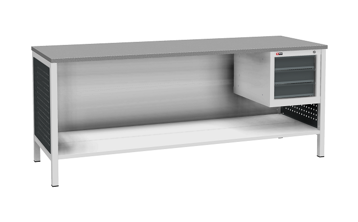Тумба ВЛ-К-003 предназначена для установки на верстак серии ВЛ-К. Комплектуется 3 выдвижными ящиками. Полезный размер ящиков: (ВхШхГ) 80х306х459 мм. Тумба закрывается центральным ключевым замком (50 000 циклов). Цвет: серый Ral 7038, лицевая панель ящиков антрацит Ral 7016. Тип покрытия: эпоксидная порошковая краска